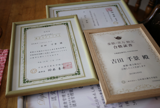 3人のお子さんの子育てをしながら猛勉強をし、漢方スタイリスト、漢方養生指導士、健康管理士1級などの資格を次々と取得しました。